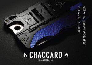 財布やポケットに収まる、わずか厚さ8.7mmのカードサイズ。その小さなボディに、火を起こす、枝を切る、ロープを裂く…など、アウトドアで必要な“生きるための機能”を詰め込んだツール──それがチャッカード(CHACCARD)です。